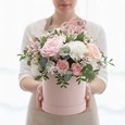 Розы и скимия в шляпной коробке