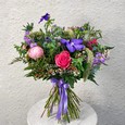 Розовый букет роз, диантусов и гортензий