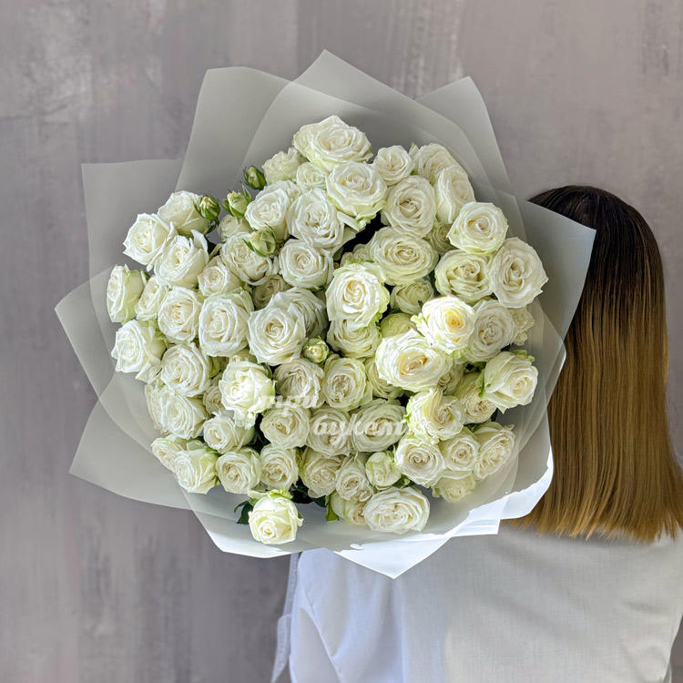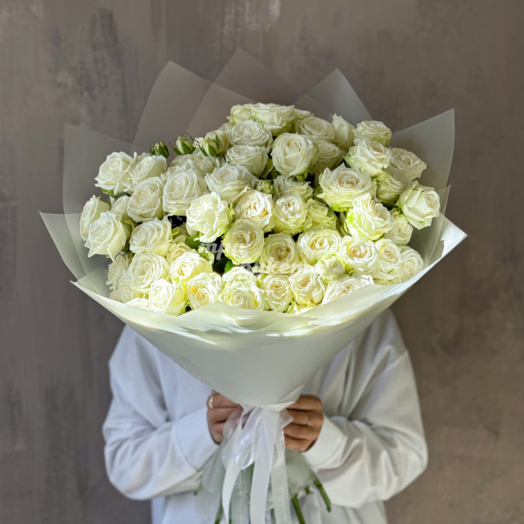 - Белые кустовые пионовидные розы, 19 шт.