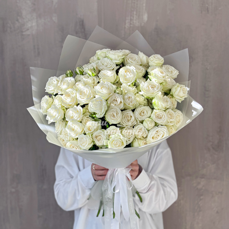 Белый букет кустовых пионовидных роз