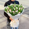 Букет эустом, тюльпанов и гипсофилы
