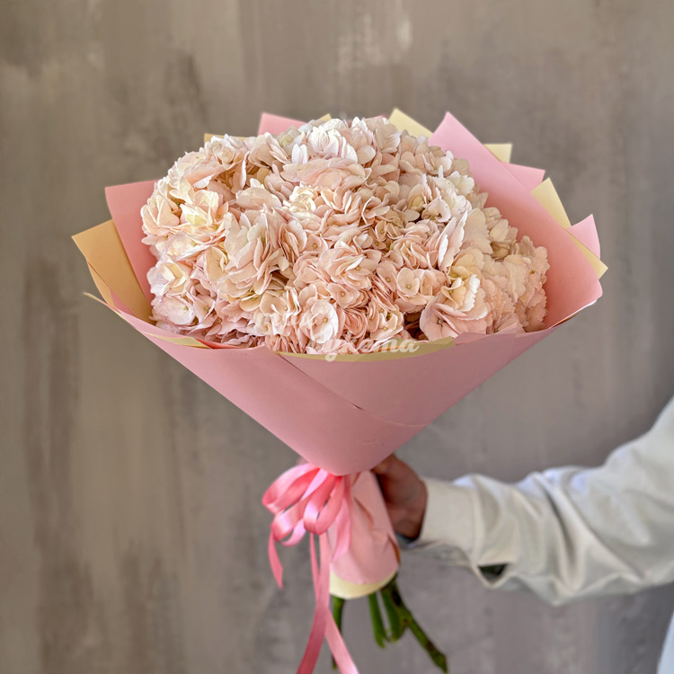 Букет из 7 персиковых гортензий