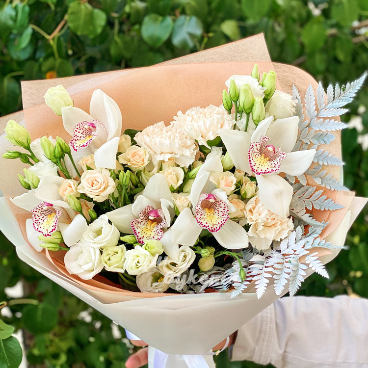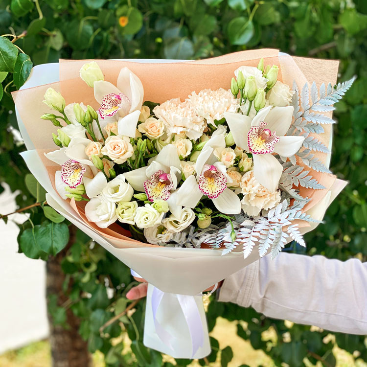 Букет из эустом и орхидей
