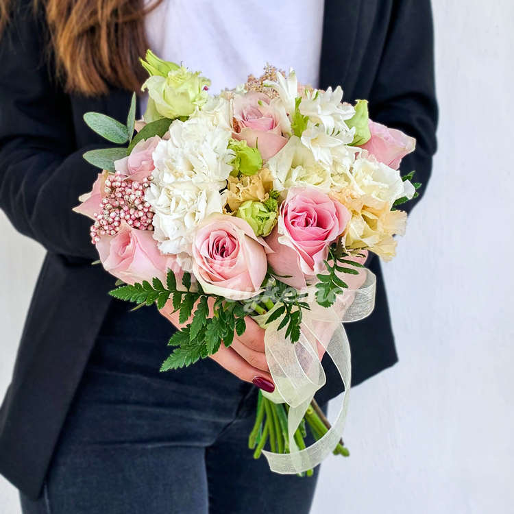 Букет из эустом и розовых роз