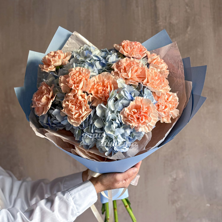 Букет из гортензий и персиковых диантусов
