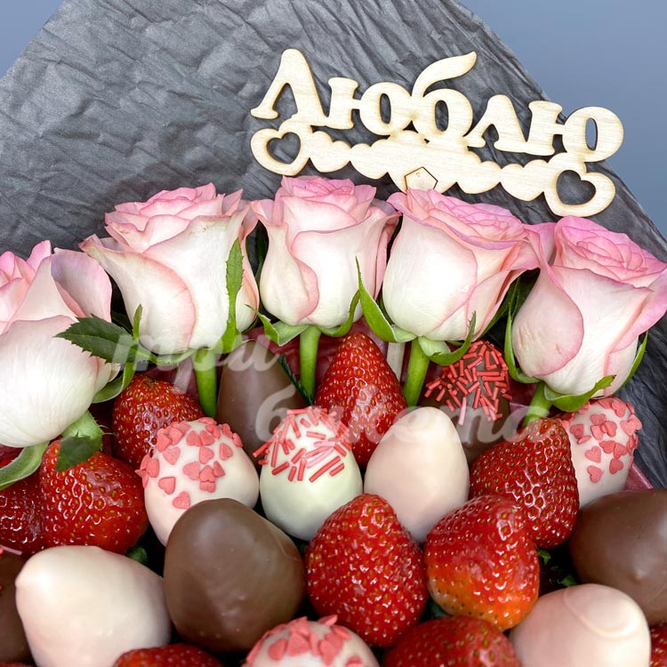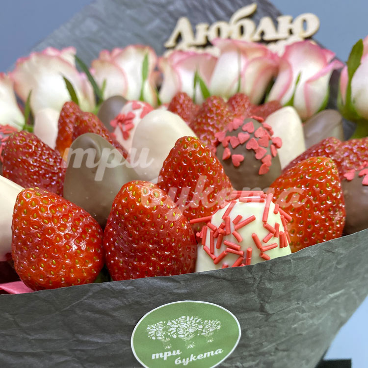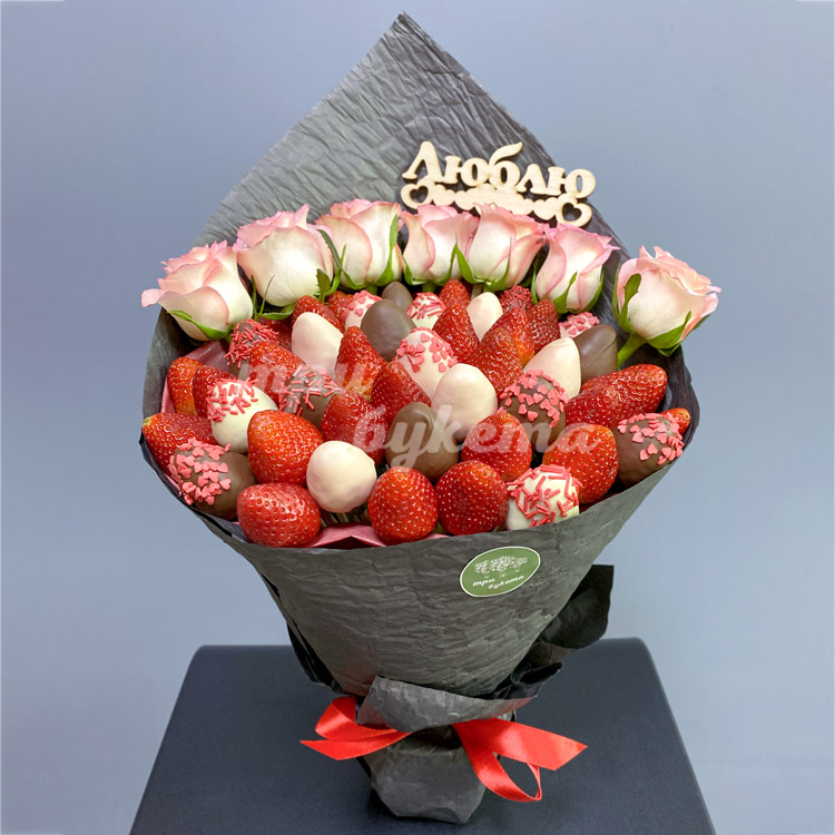 Букет из клубники и роз «Люблю»