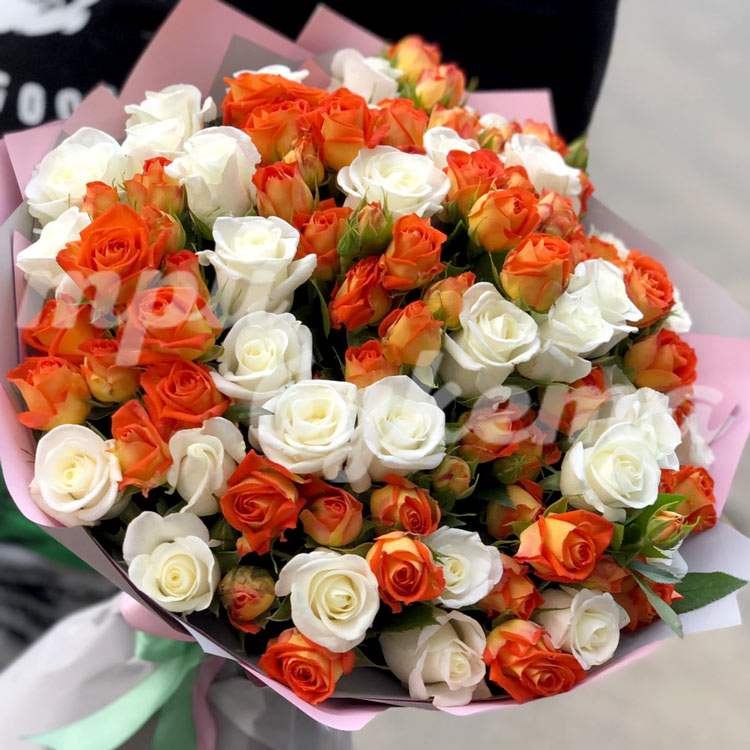 Букет из оранжевых и белых роз