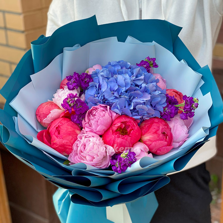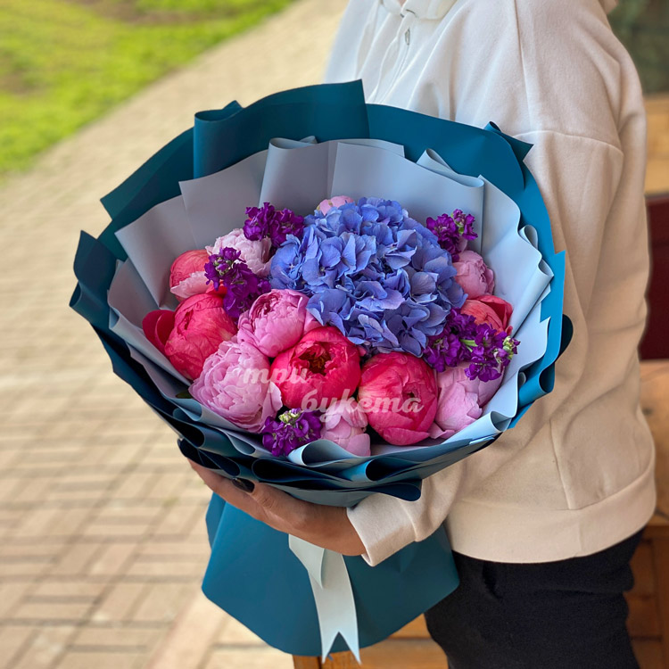 Букет из пионов и гортензий