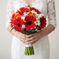 Букет ярких хризантем с белыми гвоздиками