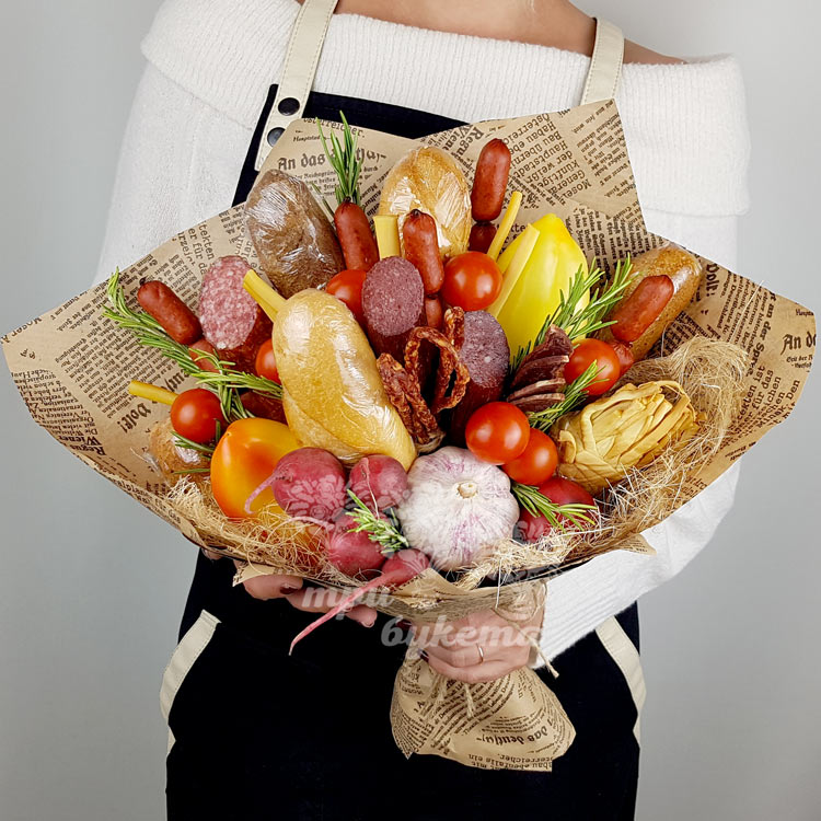 Колбасный букет из сыра и помидоров