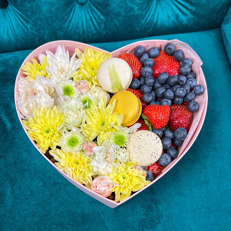 Композиция из клубники и хризантем
