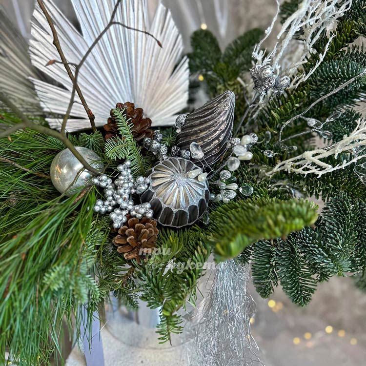 Коробка из хвои и серебряного декора