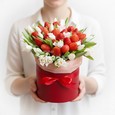 Коробка нежно-розовых эустом с пионами