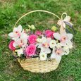 Корзина с амариллисами и розами