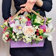 Розы и хризантемы в ящичке