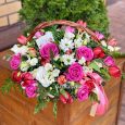 Ярко-розовые французские розы в кашпо